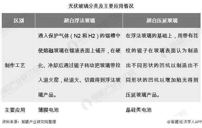 光伏玻璃作為光伏組件的上游原料,其強度、透光率等直接決定了光伏組件的壽命和發(fā)電效率,是晶硅光伏組件生產(chǎn)的必備材料,因此光伏玻璃行業(yè)是光伏行業(yè)的重要組成部分。光伏玻璃主要分為超白壓延玻璃和超白浮法玻璃,超白壓延玻璃在市場中占據(jù)更大份額。
