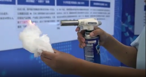 中國(guó)粉體網(wǎng)訊 1000攝氏度的高溫噴槍火焰,對(duì)準(zhǔn)一小撮“棉被芯”發(fā)起挑戰(zhàn)。令人意外的是,“棉被芯”完勝,它不僅沒(méi)有燃燒起來(lái),離開(kāi)火焰后只剩微微的余溫。原來(lái),這看起來(lái)像棉被芯的神奇材料是高性能氧化鋁纖維,它可是“高溫勁敵”。