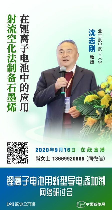 想知道更多關于射流空化法制備石墨烯的內容嗎?歡迎參加中國粉體網(wǎng)旗下粉體公開課平臺于2020年9月16日舉辦的首屆“鋰離子電池用新型導電添加劑網(wǎng)絡研討會”,屆時北京航空航天大學沈志剛教授將為大家?guī)眍}為《射流空化法制備石墨烯在鋰離子電池中的應用》的報告。詳情見閱讀原文。