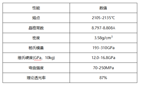 透明鎂鋁尖晶石物理性能