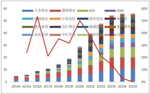 上游穩(wěn)步擴張,保證鋰資源充足