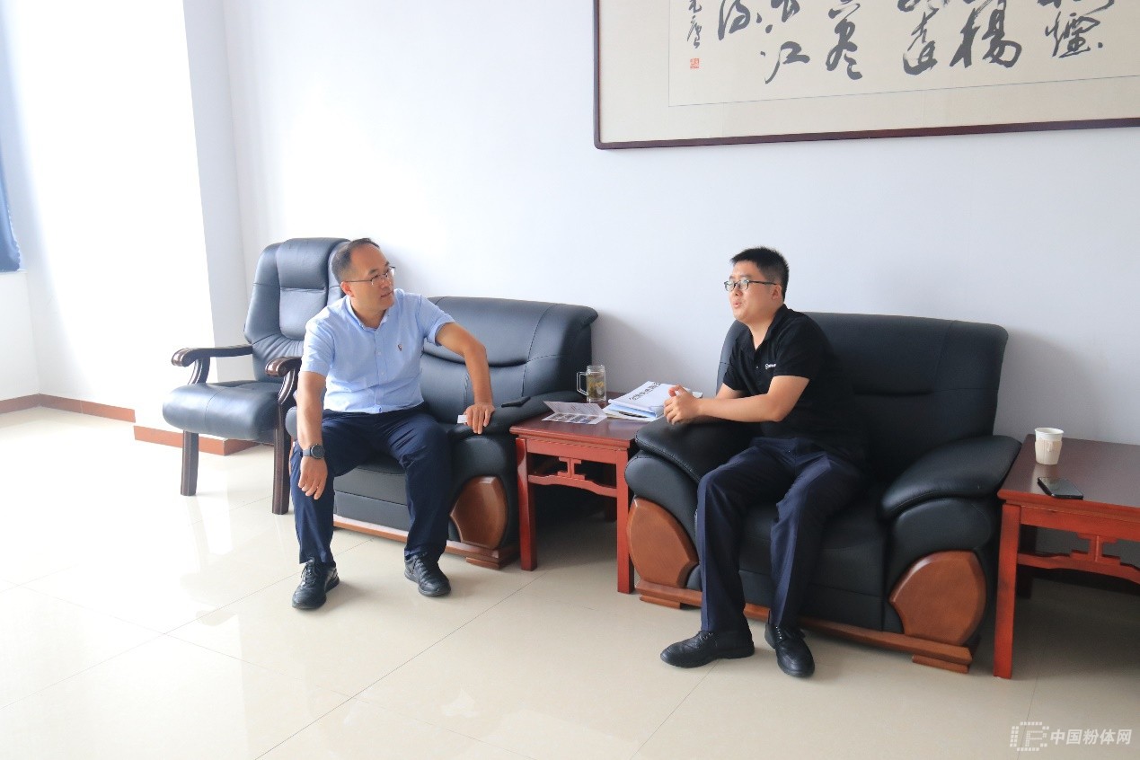 (中國(guó)粉體網(wǎng)會(huì)展部總經(jīng)理孔德宇與山東工陶院總經(jīng)理王重海進(jìn)行交流)
