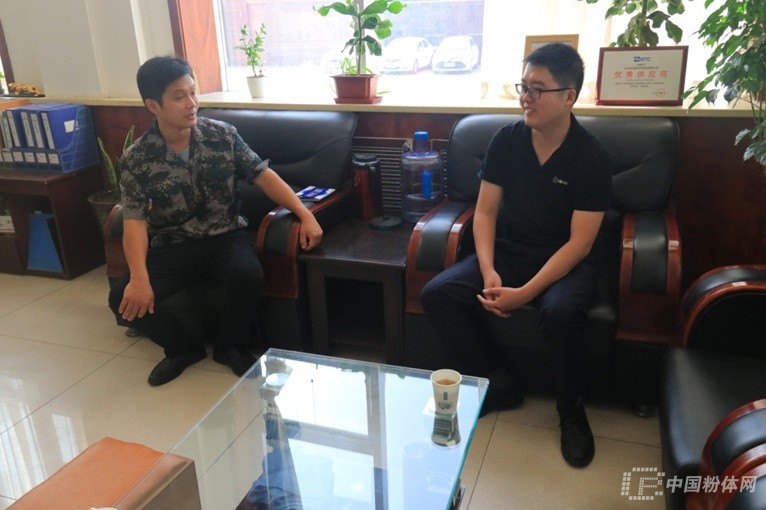 (中國(guó)粉體網(wǎng)會(huì)展部總經(jīng)理孔德宇與山東金鴻區(qū)域經(jīng)理李海東進(jìn)行交流)