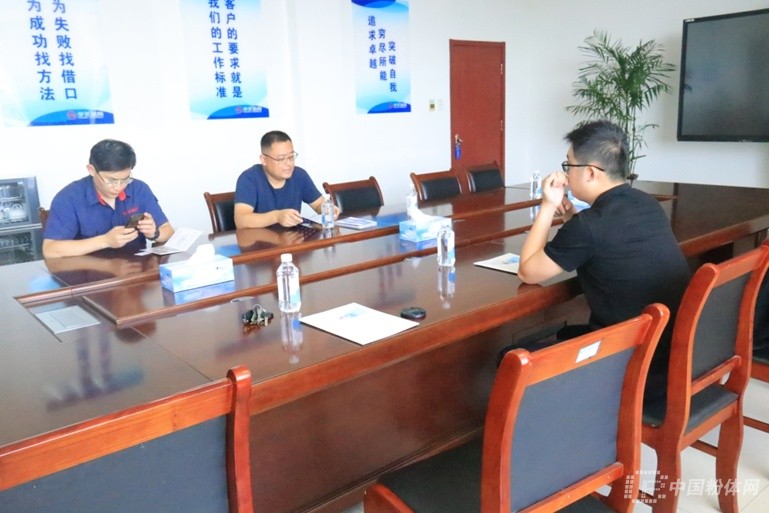 (中國粉體網(wǎng)會展部經(jīng)理孔德宇與濰坊華美銷售總經(jīng)理許榮利等進(jìn)行交流)