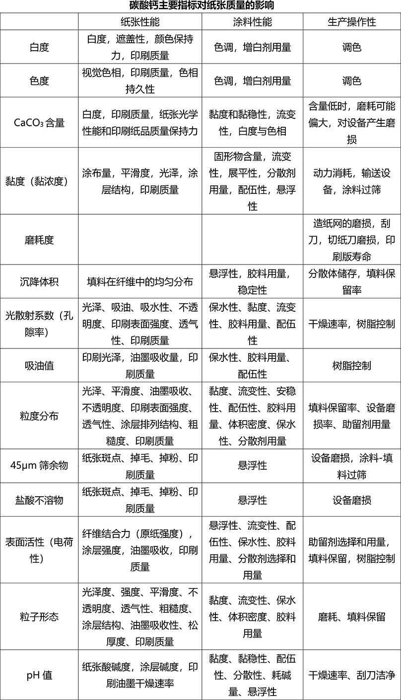 三、碳酸鈣主要指標(biāo)對(duì)紙張質(zhì)量的影響