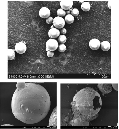 上圖即是漂珠的SEM形貌。據(jù)中國粉體網(wǎng)編輯的了解,對于漂珠形成的機(jī)理已有眾多報(bào)道,但并不統(tǒng)一,多數(shù)人認(rèn)為粉煤灰中的漂珠,是煤粉進(jìn)入鍋爐中燃燒,高溫作用下,煤渣通過釋放部分水分,排出內(nèi)部氣體,表面氧化,燃燒等諸多復(fù)雜的反應(yīng)后,又經(jīng)過多次冷熱交替的過程而形成。