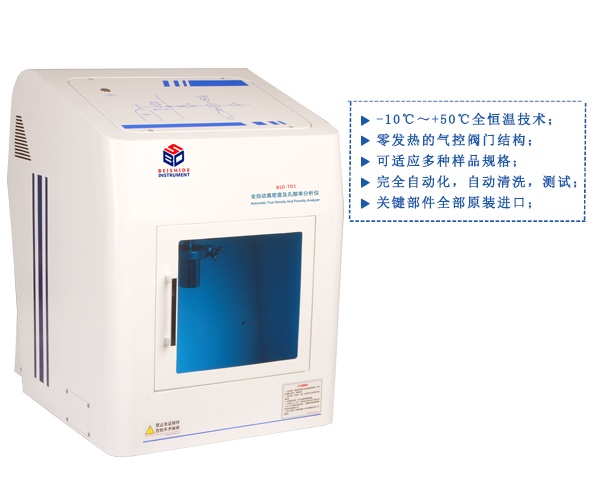 BSD-TD-K系列全自動(dòng)真密度分析儀由計(jì)算機(jī)控制全自動(dòng)運(yùn)行的氣體膨脹真密度分析系統(tǒng),具有多項(xiàng)技術(shù)專利,獨(dú)創(chuàng)的測(cè)試方式,使其應(yīng)用領(lǐng)域較同類儀器更廣,能準(zhǔn)確測(cè)定粉體、塊狀固體、漿狀物質(zhì)、泡沫等多種材料的真密度和孔隙率,適用于廣大研究機(jī)構(gòu)和企事業(yè)單位。