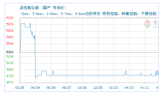 中國粉體網(wǎng)訊 10月20日國產(chǎn)關于活性氧化鋁球的報價為4850元/噸。活性氧化鋁球的規(guī)格:-3mm、3-5mm、4-6mm、5-7mm、6-8mm白的球狀 吸附性能、除氟性能,干燥性能 催化劑。該報價有效期為3天。報價提供方:河南寶鑫環(huán)?萍加邢薰尽
