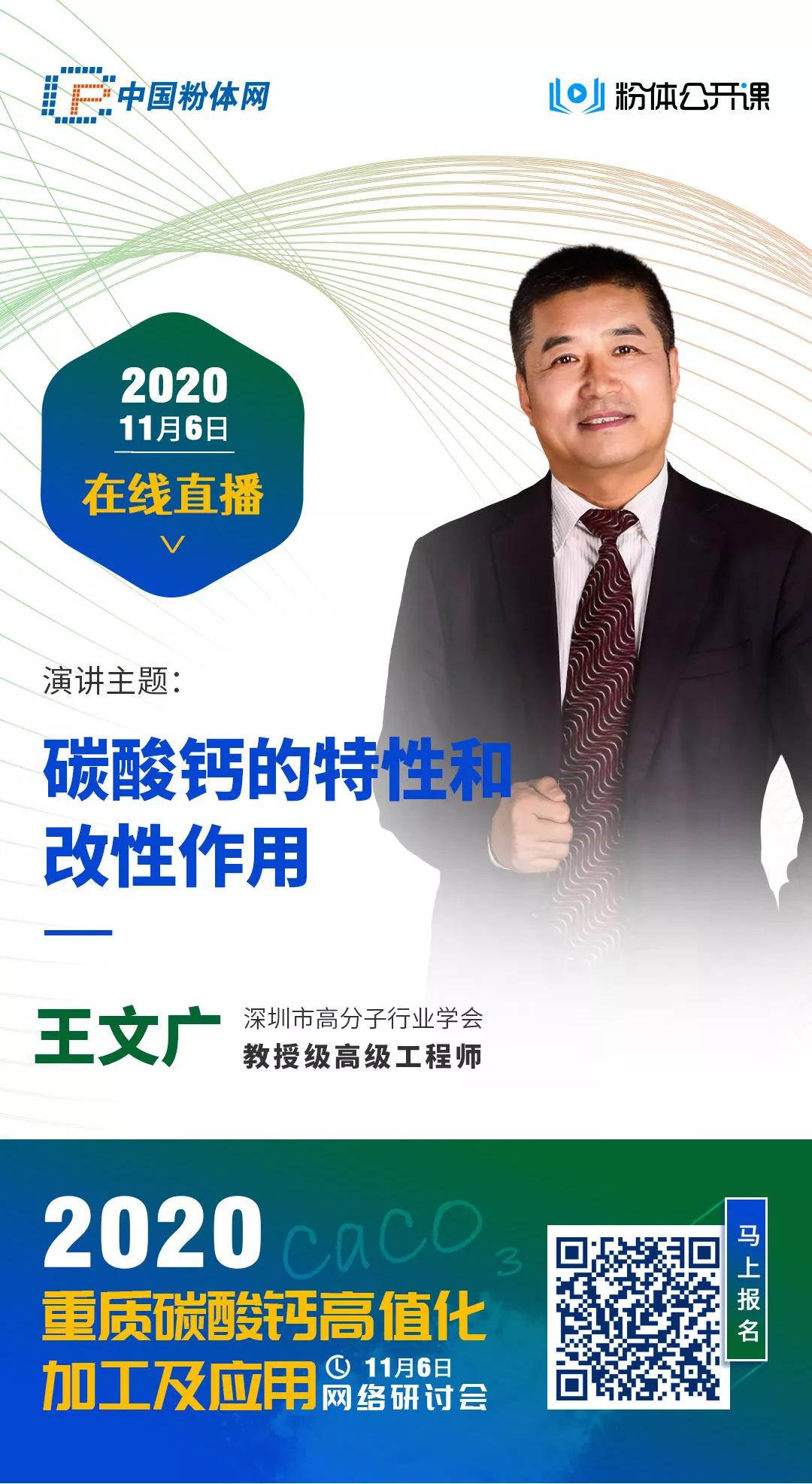 想要了解更多關(guān)于碳酸鈣的特性和改性作用的詳細(xì)內(nèi)容,敬請(qǐng)期待中國粉體網(wǎng)旗下粉體公開課將于2020年11月6日舉辦的“重質(zhì)碳酸鈣高值化加工及應(yīng)用網(wǎng)絡(luò)研討會(huì)”。屆時(shí),深圳市高分子行業(yè)學(xué)會(huì)常務(wù)副會(huì)長王文廣將帶來題為《碳酸鈣的特性和改性作用》的報(bào)告,為您答疑解惑。