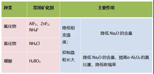 這時(shí),礦化劑就是一個(gè)非常必要的存在了。因?yàn)榈V化劑除了具有除鈉及降低α-氧化鋁轉(zhuǎn)變溫度雙重作用,而且還對(duì)改變?cè)螤罹哂泻芎玫拇龠M(jìn)作用。