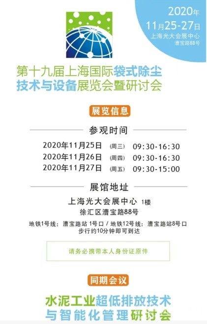 第十九屆上海國(guó)際袋式除塵技術(shù)與設(shè)備展覽會(huì)暨研討會(huì),將于2020年11月25-27日在上海光大國(guó)際會(huì)展中心西館(上海漕寶路88號(hào))舉行。屆時(shí),在同期舉行的水泥工業(yè)超低排放技術(shù)與智能化管理研討會(huì),蘇州協(xié)昌環(huán)?萍脊煞萦邢薰高級(jí)工程師王樹玲將作“煙塵治理袋式除塵運(yùn)行管理云平臺(tái)智能運(yùn)維技術(shù)及應(yīng)用”的主題報(bào)告。