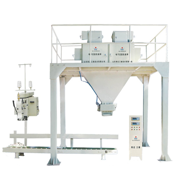 公司有生產(chǎn)噸袋包裝秤的豐富經(jīng)驗(yàn),DCS-1000-DG-W和DCS-1000-DN-T兩款噸袋包裝機(jī)應(yīng)用廣泛,氧化鋁、水泥的噸包裝秤使用的越來(lái)越多。DCS-1000-DN-T是傳感器上置稱重方式,配備1500X3000的馬蹄鏈輸送機(jī),采用具有PLC功能的儀表,提高了包裝速度和精度,根據(jù)包裝物料的不同,需要加裝除塵器進(jìn)行除塵,超細(xì)粉包裝需要加裝抽真空系統(tǒng);DCS-1000-DG-W采用下置傳感器稱重方式,包裝完成后直接用叉車運(yùn)走。噸袋包裝秤的一般包裝范圍是500kg--2000噸。