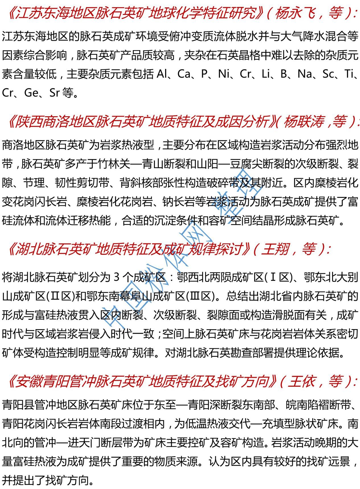 (1)脈石英礦產(chǎn)資源分布廣泛,資源優(yōu)勢明顯。但由于脈石英的形成主要與花崗巖有關(guān)的巖漿熱液作用有關(guān),其礦床規(guī)模一般不大,通常為中小型礦床。