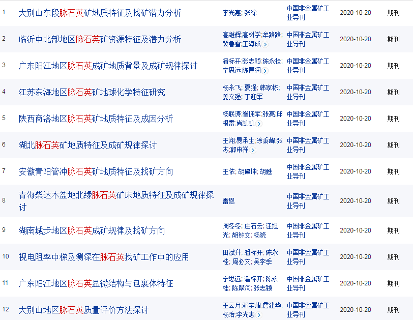 中國粉體網(wǎng)訊 中國粉體網(wǎng)編輯近日發(fā)現(xiàn),在最新一期(2020年05期)的中國非金屬礦工業(yè)導(dǎo)刊上,密集刊登了以“脈石英”為主題的十幾篇相關(guān)論文,內(nèi)容涉及全國各大礦區(qū)脈石英的成礦規(guī)律及找礦方向等專業(yè)研究。