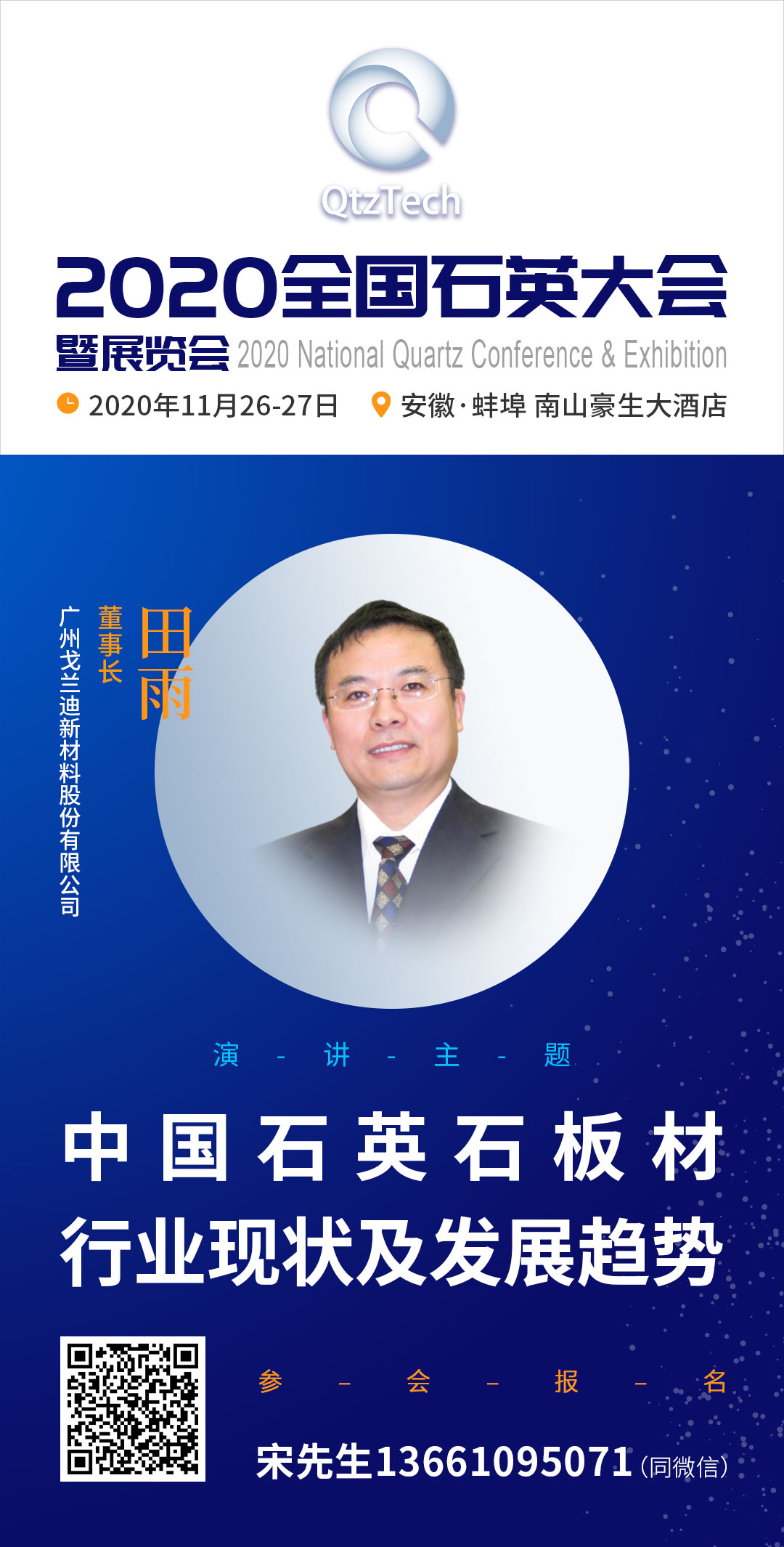 為了更好地了解市場變化,中國粉體網(wǎng)特意每年舉辦全國石英大會,大會從2017年開始,迄今已經(jīng)成功舉辦三屆,今年,中國粉體網(wǎng)全國石英大會再出發(fā)——“2020年全國石英大會”將于2020年11月26-27日在安徽蚌埠南山豪生大酒店舉行。特邀嘉賓廣州戈蘭迪新材料股份有限公司董事長田雨先生將帶來《中國石英石板材行業(yè)現(xiàn)狀及發(fā)展趨勢》的報告。他將由淺及深地就石英石板材組成、中國石英石板材企業(yè)歷史、石英石板材的應用場景、中國石英石板材企業(yè)產(chǎn)區(qū)分布、中國石英石板材企業(yè)類型、中國石英石企業(yè)當前機會、中國石英石板材企業(yè)的潛在危機、石英石板材對石英砂(粉)的要求、石英砂(粉)對石英石板材的影響等問題進行介紹。