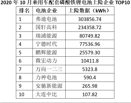 配套電池企業(yè)方面,由于比亞迪·漢的熱銷,10月份弗迪電池也同樣拿下了乘用車(chē)磷酸鐵鋰電池配套裝機(jī)量第一的位置。