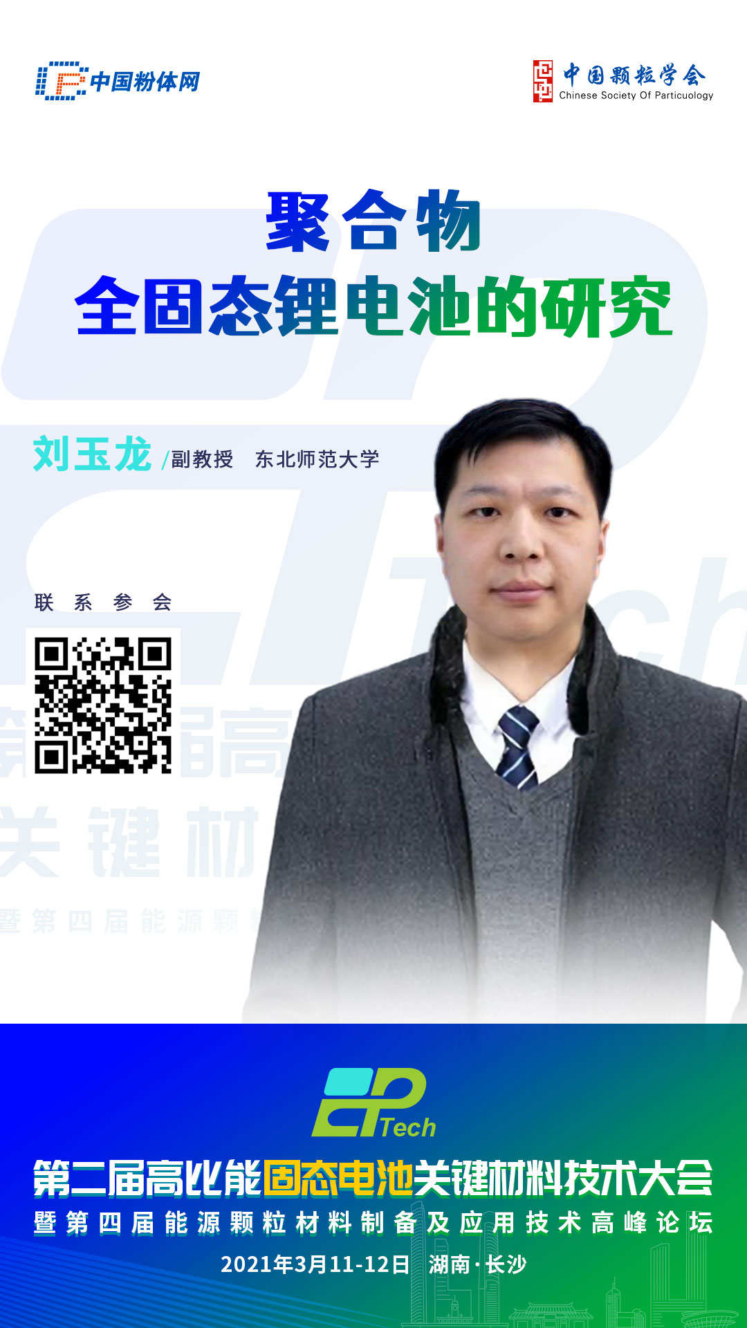 2021年3月11-12日,由中國(guó)粉體網(wǎng)、中國(guó)顆粒學(xué)會(huì)能源顆粒材料專委會(huì)主辦,長(zhǎng)沙礦冶研究院先進(jìn)材料研究所協(xié)辦的第二屆高比能固態(tài)電池關(guān)鍵材料技術(shù)大會(huì)將在長(zhǎng)沙吉美國(guó)際會(huì)展酒店隆重舉行,屆時(shí),劉玉龍教授將帶來報(bào)告《聚合物全固態(tài)鋰電池的研究》,與參會(huì)嘉賓分享相關(guān)研究成果。