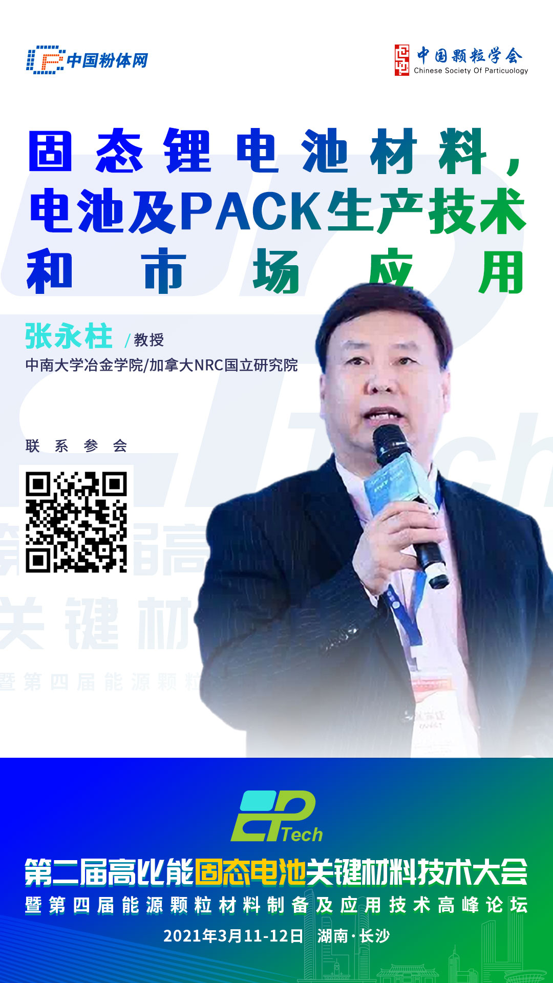 2021年3月11-12日,由中國粉體網(wǎng)、中國顆粒學(xué)會能源顆粒材料專委會主辦,長沙礦冶研究院先進(jìn)材料研究所協(xié)辦的第二屆高比能固態(tài)電池關(guān)鍵材料技術(shù)大會將在長沙吉美國際會展酒店隆重舉行,屆時,張永柱教授將帶來報告《固態(tài)鋰電池材料,電池及PACK生產(chǎn)技術(shù)和市場應(yīng)用》,與參會嘉賓分享相關(guān)研究成果。