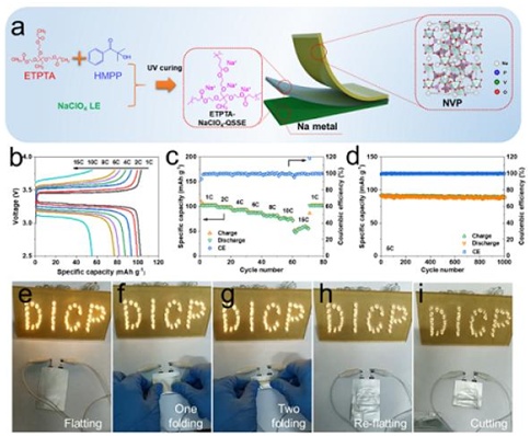 中國粉體網(wǎng)訊 近日,中科院發(fā)布消息,稱大連化學(xué)物理研究所的研究團隊發(fā)展出一種“高室溫離子電導(dǎo)率的光聚合物凝膠準(zhǔn)固態(tài)電解質(zhì)”,其表現(xiàn)出優(yōu)異的室溫離子電導(dǎo)率、寬電化學(xué)窗口和出色的柔韌性,并以此構(gòu)筑出高比能、高倍率、長循環(huán)性能的鈉金屬電池。