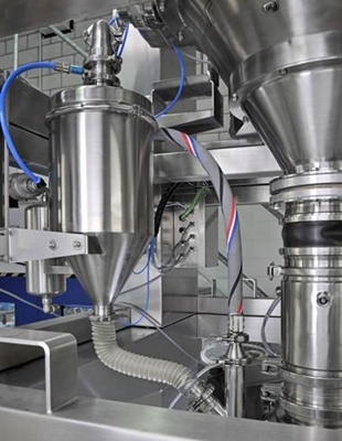 整合粉碎、篩分、定量給料、分裝功能的Profilling分裝系統(tǒng)這條生產(chǎn)線可以實(shí)現(xiàn)將從上游設(shè)備如干燥機(jī)中出料的大塊、團(tuán)聚的物料粉碎、篩分然后定量給料并最終分裝。由Frewitt設(shè)計(jì)制造的Profilling分裝系統(tǒng)可以一次性滿足上述所有需求,并可以快速的適應(yīng)于任何生產(chǎn)環(huán)境中。粉碎最細(xì)可達(dá)50 μm,可以采用粉碎系統(tǒng)或者專門的定量給料系統(tǒng)進(jìn)行給料。分裝模塊適用于各種不同形狀材質(zhì)的容器,精度可達(dá)±10g。