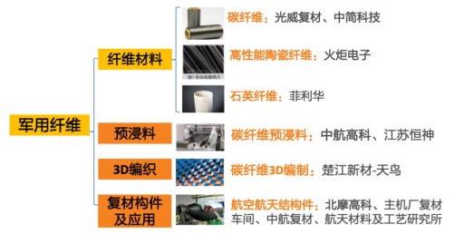 在軍事裝備現(xiàn)代化、民用產(chǎn)品高性能化、生產(chǎn)過程標(biāo)準(zhǔn)化、技術(shù)進步高速化發(fā)展的今天,高性能纖維,以及高性能纖維增強的復(fù)合材料已在各領(lǐng)域發(fā)揮重要作用。隨著軍工產(chǎn)業(yè)的發(fā)展,碳纖維及其復(fù)合材料等覆蓋率和滲透率的不斷提升,以及自主能力建設(shè)和進口替代的要求,軍工應(yīng)用需求保持穩(wěn)定增長。光威復(fù)材、中簡科技、中航高科、火炬電子、菲利華,以及鈦合金、高溫合金領(lǐng)域的寶鈦股份、西部超導(dǎo)、鋼研高納等企業(yè)應(yīng)發(fā)揮龍頭優(yōu)勢,積極布局,共促我國軍工產(chǎn)業(yè)的發(fā)展。