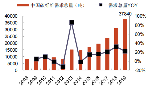 國內(nèi)碳纖維市場:近年需求量以20%+速度增長