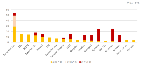 全球碳纖維企業(yè)產(chǎn)能、產(chǎn)量對比