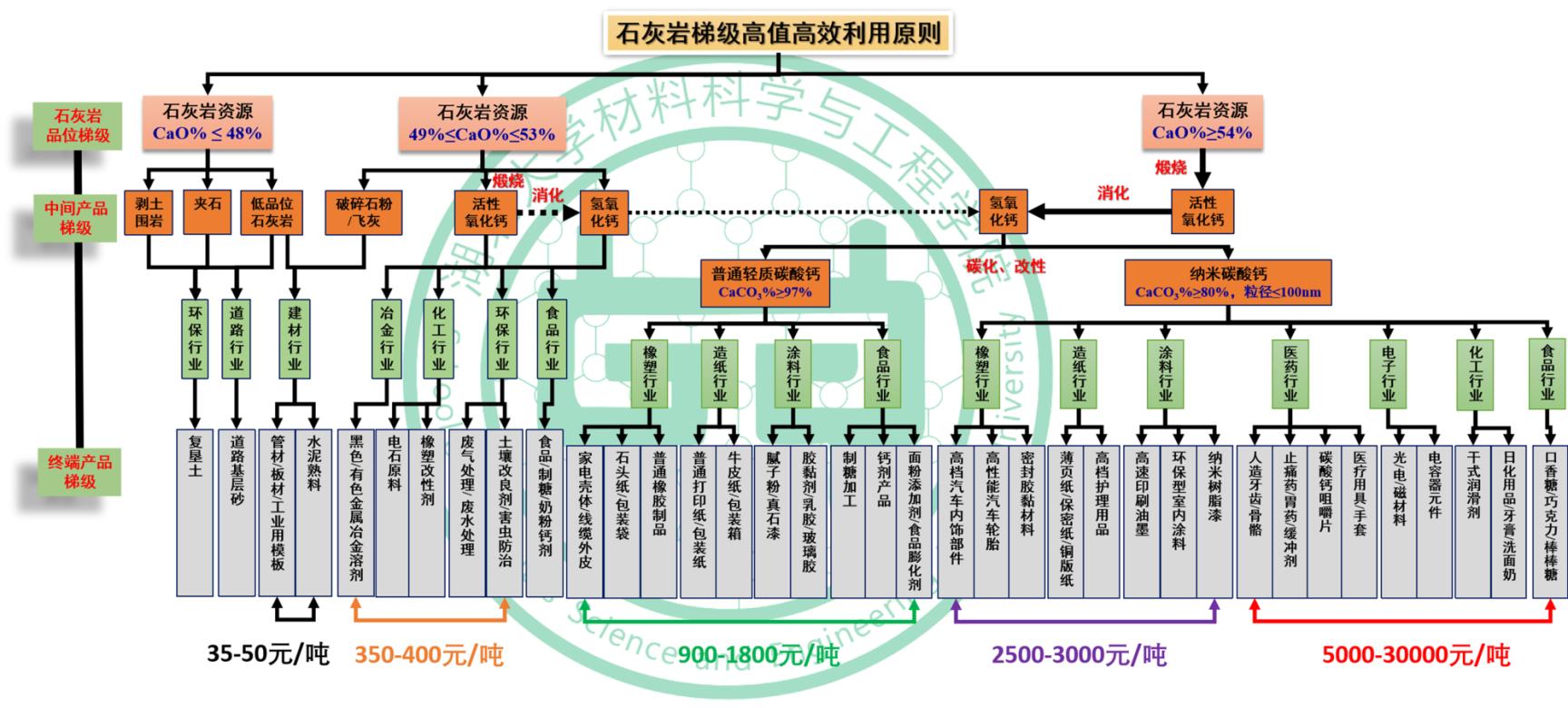 3、建立石灰?guī)r資源梯級高值高效利用原則