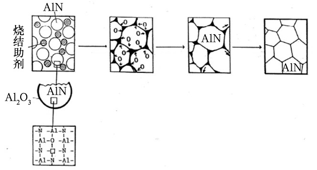 AlN屬于共價(jià)化合物,自擴(kuò)散系數(shù)小,燒結(jié)致密化非常困難,通常需要使用稀土金屬氧化物和堿土金屬氧化物作為燒結(jié)助劑來促進(jìn)燒結(jié),但仍需要1800℃以上的燒結(jié)溫度。