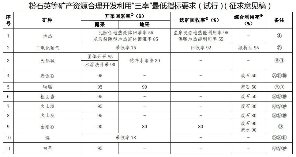 自然資源部辦公廳關(guān)于征求粉石英等礦產(chǎn)資源合理開發(fā)利用“三率”最低指標(biāo)要求意見的函