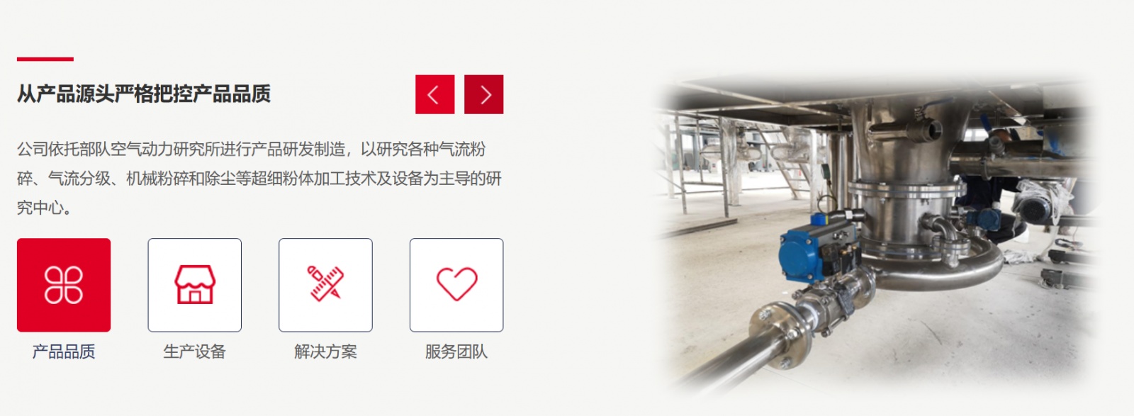 公司依托中國空氣動力研究與發(fā)展中心進行產(chǎn)品研發(fā)和技術(shù)升級,該中心是基于空氣動力學(xué)及氣固兩相流理論研究為基礎(chǔ)整合了教授、研究員、博士為主體的研究隊伍二十余人,以研究各種氣流(蒸汽)粉碎、氣流分級、機械粉碎和除塵等超微技術(shù)為主導(dǎo)的研究中心。同時,公司與中國(綿陽)科技城工業(yè)技術(shù)研究院形成了技術(shù)聯(lián)合體,該院為我公司提供機械設(shè)計、外觀結(jié)構(gòu)設(shè)計等相關(guān)技術(shù)支持。公司崇尚自主創(chuàng)新、追求卓越,在氣流粉碎、空氣分級技術(shù)、粉體表面改性的設(shè)備領(lǐng)域中的研究已走在粉體工業(yè)的前沿。公司已成為技術(shù)領(lǐng)先、設(shè)備完善的粉碎、分級設(shè)備的研制與微粉加工的專業(yè)公司。