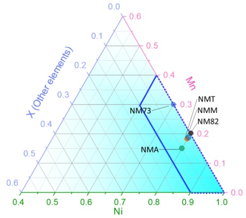 全新的無鈷層狀正極材料LiNiαMnβXγO2