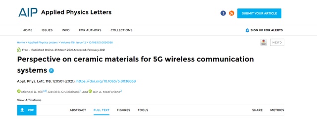 總部位于加州的先進半導體公司Skyworks Solutions的技術總監(jiān)Michael Hill日前表示,事實上,5G技術的采用仍處于早期階段。在由美國物理聯(lián)合會(AIP)出版的《應用物理快報》上發(fā)表的論文中,Hill和他的同事概述了新興5G技術,并展示了增強陶瓷材料如何在5G發(fā)展中發(fā)揮關鍵作用。