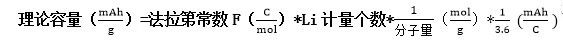 電極材料理論容量,即假定材料中鋰離子全部參與電化學(xué)反應(yīng)所能夠提供的容量,其值通過下式計算: