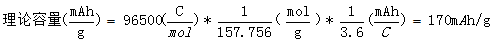 LiFePO4摩爾質(zhì)量157.756 g/mol,其理論容量為: