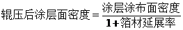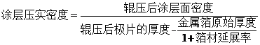 而考慮到極片輥壓時,金屬箔材存在延展,輥壓后涂層的面密度通過下式計算: