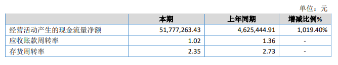 報(bào)告期內(nèi)經(jīng)營(yíng)活動(dòng)產(chǎn)生的現(xiàn)金流量?jī)纛~為51,777,263.43元,截至2020年末歸屬于掛牌公司股東的凈資產(chǎn)44,532,740.17元。