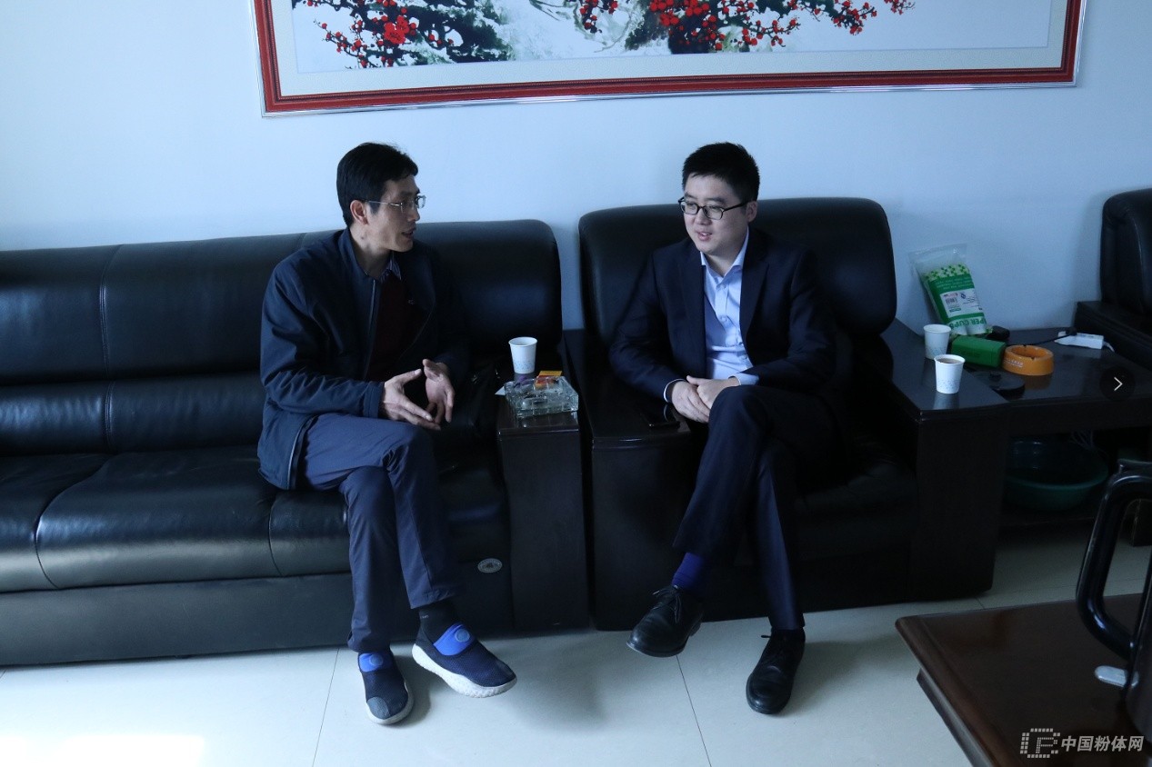 中國粉體網(wǎng)會展部經(jīng)理孔德宇(右一)與車洪生廠長(左一)合影留念
