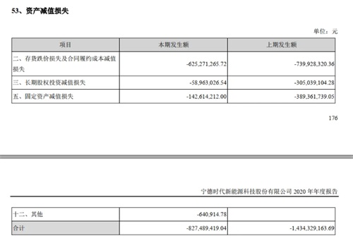 2020年度,寧德時代的資產(chǎn)減值損失約-8.27億元,而2019年度約為-14.34億元,同比減少了約6億元。