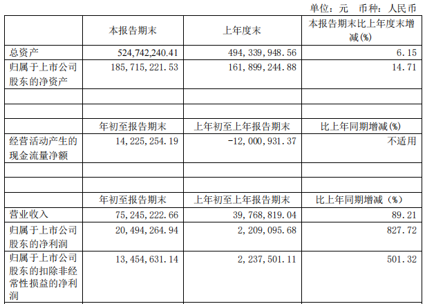 四川金頂近期發(fā)布2021年第一季度報告,報告期內(nèi)公司實現(xiàn)營業(yè)收入75,245,222.66元,同比增長89.21%;歸屬于上市公司股東的凈利潤20,494,264.94元,同比增長827.72%。