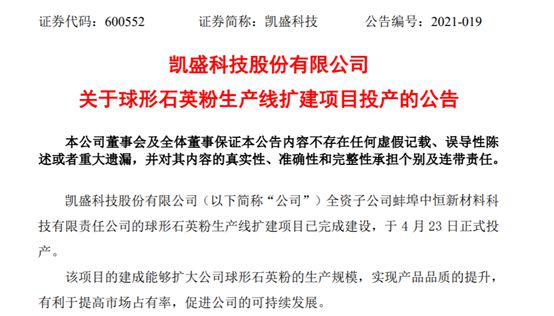 中國粉體網(wǎng)訊 2021年4月23日,據(jù)凱盛科技公告,全資子公司蚌埠中恒新材料科技有限責(zé)任公司的球形石英粉生產(chǎn)線擴(kuò)建項(xiàng)目已經(jīng)完成建設(shè),于4月23日正式投產(chǎn)。據(jù)悉,該項(xiàng)目的建成能夠擴(kuò)大公司球形石英粉的生產(chǎn)規(guī)模,實(shí)現(xiàn)產(chǎn)品品質(zhì)的提升,有利于提高市場占有率,促進(jìn)公司的可持續(xù)發(fā)展。