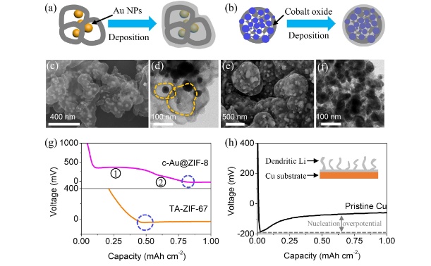 圖2:c-Au@ZIF-8的合成示意圖及其對鋰金屬沉積模式和織構的調控