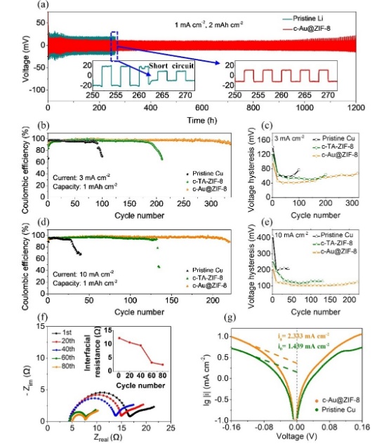 圖3:基于c-Au@ZIF-8的對稱和非對稱電池性能及其界面動力學分析