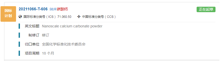 中國粉體網(wǎng)訊 中國粉體網(wǎng)小編從全國標(biāo)準(zhǔn)信息公共服務(wù)平臺獲悉,國家標(biāo)準(zhǔn)計劃《納米碳酸鈣》正在起草。