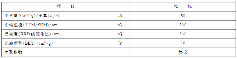 依據(jù)GB/T 19590-2011《納米碳酸鈣》,納米碳酸鈣的外觀、晶型和形貌及要求為: