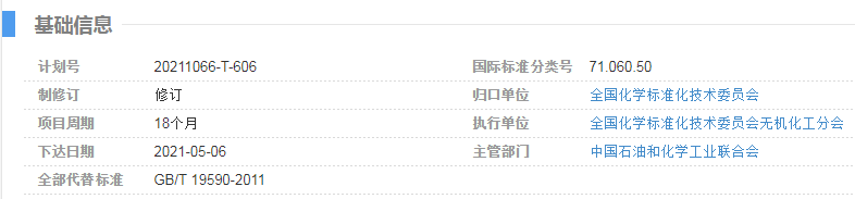 據(jù)悉,國家標(biāo)準(zhǔn)計劃《納米碳酸鈣》由TC63(全國化學(xué)標(biāo)準(zhǔn)化技術(shù)委員會)歸口上報,TC63SC1(全國化學(xué)標(biāo)準(zhǔn)化技術(shù)委員會無機(jī)化工分會)執(zhí)行,主管部門為中國石油和化學(xué)工業(yè)聯(lián)合會。擬實施日期:發(fā)布后個月正式實施。此標(biāo)準(zhǔn)將全部代替標(biāo)準(zhǔn)GB/T 19590-2011《納米碳酸鈣》。