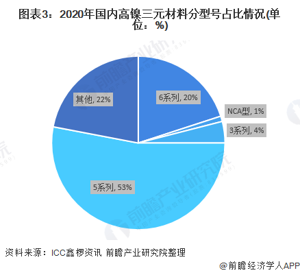 分型號(hào)來看,2020年國(guó)內(nèi)高鎳三元材料市場(chǎng)基本被容百鋰電與天津巴莫壟斷,兩家合計(jì)市占率超過85%。其中,5系列高鎳三元材料占比53%,6系列高鎳三元材料占比20%,3系列高鎳三元材料占比4%,NCA型占比1%。