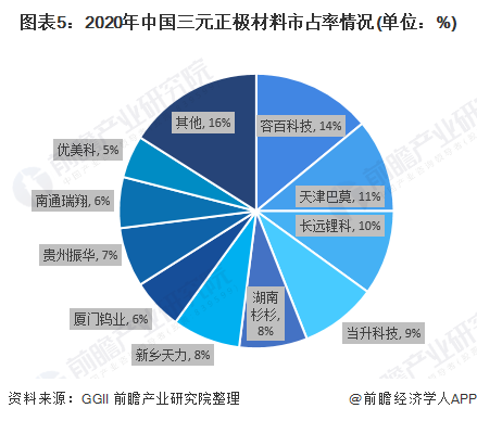 4、中國(guó)三元正極材料競(jìng)爭(zhēng)格局相對(duì)分散,頭部廠商份額差距較小
