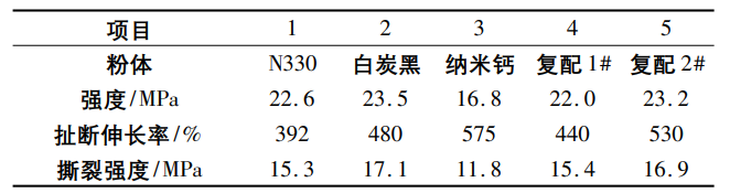 1、劉亞雄等制備納米碳酸鈣并通過實驗研究了,納米碳酸鈣比表面積、表面處理劑用量、表面處理劑種類對膠料的影響,還對比了橡膠用納米碳酸鈣、炭黑、白炭黑的性能差異。