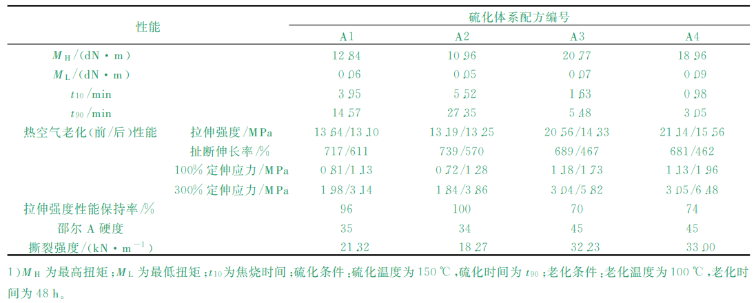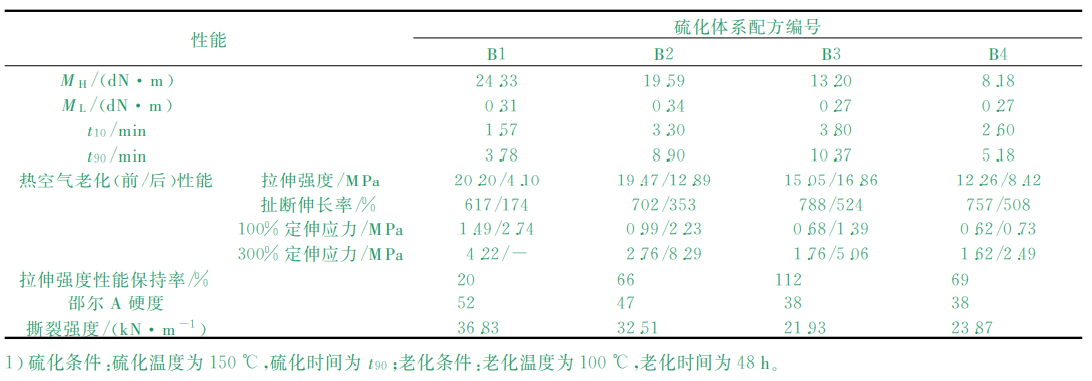 2、不同硫化體系對CaCO3填充橡膠(NR)性能的影響